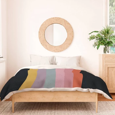 Deny Designs Emanuela Carratoni Retro Rainbow Duvet Cover Bedding Set Black